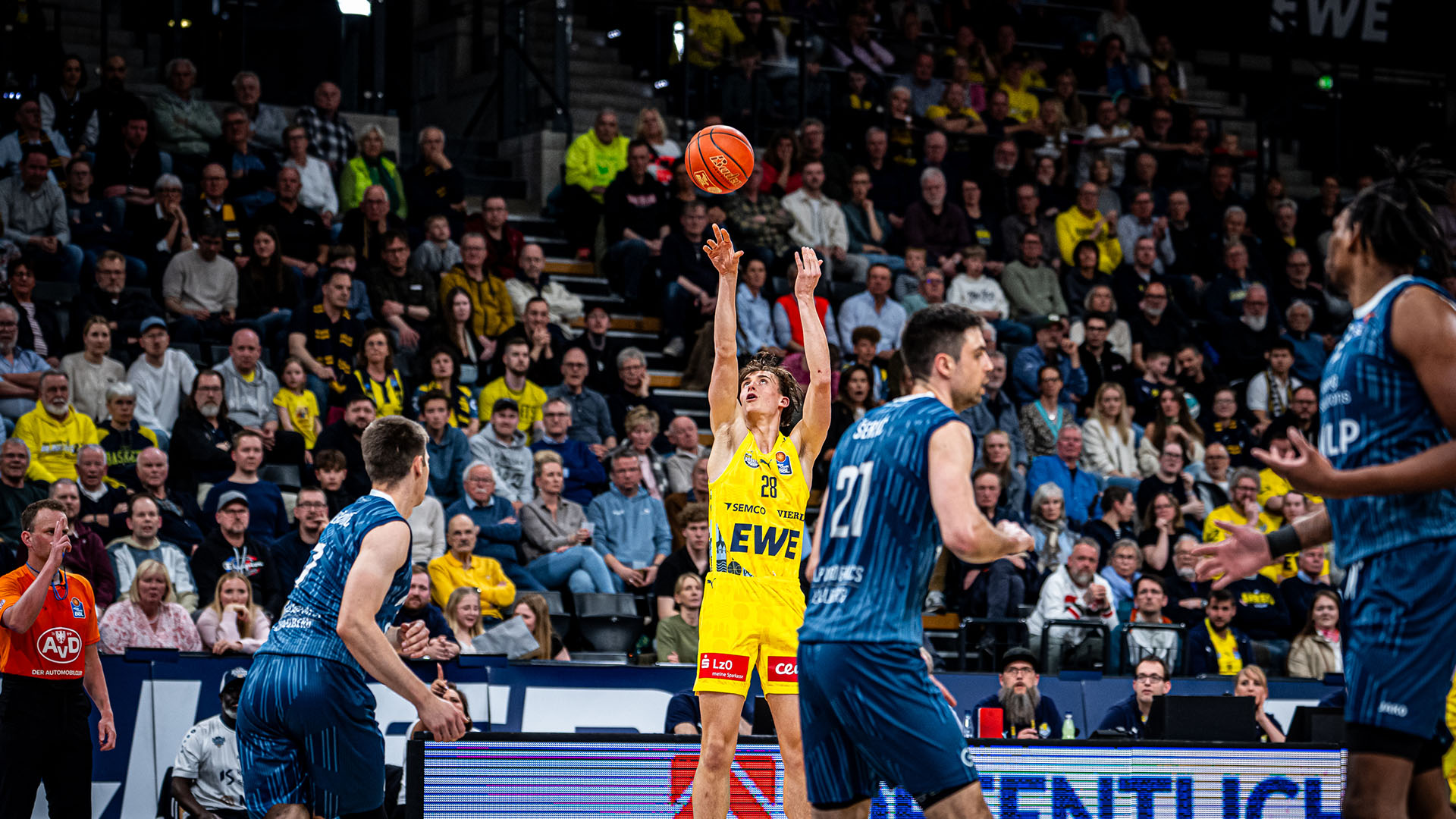 Die EWE Baskets Oldenburg bleiben im Rennen um die Postseason in der easyCredit Basketball Bundesliga. Am Samstagabend besiegte die Mannschaft von Headcoach Lazar Spasic die MLP Academics Heidelberg mit 94:74 in der einmal mehr mit 6.335 Zuschauern ausverkauften großen EWE ARENA, zudem unterlagen die ROSTOCK SEAWOLVES als einer der größten Konkurrenten um einen Play-In-Platz in Ludwigsburg. Das Rennen um die Saisonverlängerung dürfte angesichts der Dichte im Mittelfeld des Klassements bis zum letzten Spieltag der regulären Saison spannend bleiben.