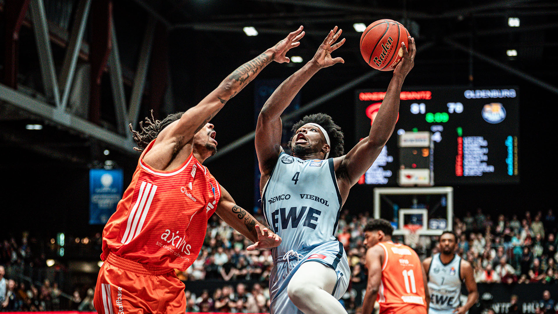 In einer Partie, die angesichts der Tabellensituation eine richtungsweisende Bedeutung für die Oldenburger hatte, waren es mehrere Minuten im zweiten Viertel, in denen die EWE Baskets ihre Struktur verloren, die am Ende den Unterschied machten. Nach einem 0:15-Lauf und zwischenzeitlich 21 Punkten Rückstand kurz vor der Halbzeit kämpften die Gäste sich in Chemnitz noch einmal heran, verkürzten im letzten Viertel auf fünf Punkte Rückstand, konnten dem Spiel keine Wende geben, verteidigten am Ende zumindest den direkten Vergleich.
