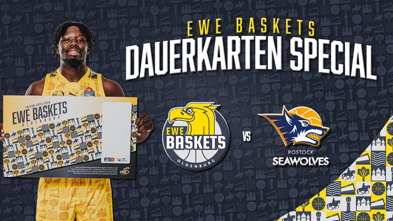 Am Montagabend (20 Uhr) kämpfen die EWE Baskets Oldenburg nicht nur im Duell mit den ROSTOCK SEAWOLVES um den Anschluss an die Playoffs, auf die Dauerkarteninhaber wartet zudem ein besonderes Highlight. Zum zweiten Mal in dieser Saison erhalten die treuesten Fans mit Dauerkarten-Special attraktive Preise und Angebote steht in der Großen EWE ARENA das nächste Highlight für alle Dauerkarten-Inhaber an: Beim Heimspiel der EWE Baskets Oldenburg gegen Rostock wartet erneut ein attraktives Dauerkarten-Special auf die treuesten Fans.